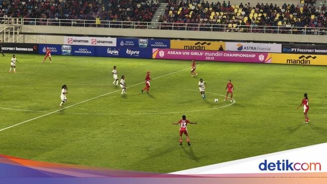The Indonesian U-16 women’s national team leads Timor Leste’s U-16 women’s national team by a score of 5-0 at halftime. Indonesia’s striker, Nasywa Salsabila Fatah, scored a hat trick. The other two goals were scored by Jazlyn Kayla Firyal and Ja…