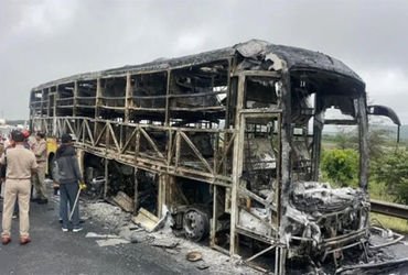 A bus traveling from Hyderabad to Bangalore caught fire as a result of a motorcycle colliding with it, leading to the tragic deaths of 20 people on board. The structure of the sleeper bus was also found to be compromised, with the driver fleeing the scene as the fire broke out. It was reported that the travel company had violated several regulations.