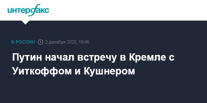 Moscow. December 2. INTERFAX.RU – Russian President Vladimir Putin is meeting with US President’s special envoy Steve Whitkoff in the Kremlin on Tuesday evening. The meeting also includes American President’s son-in-law Jared Kushner. On the Russian side, Assistant to the President Yuri Ushakov and Presidential Special Representative, CEO of RDIF Kirill Dmitriev are present. At the beginning of the meeting, Putin expressed his pleasure in seeing Whitkoff and Kushner, noting that they had a walk around Moscow before the meeting. ‘Yes, we had a good, pleasant walk around the city,’ Whitkoff said. ‘Moscow authorities have the right to be proud of what they have done for the development of the capital recently. I hope you were able to see it,’ Putin remarked. Whitkoff described Moscow as an ‘amazing city.’ It is expected that the peaceful plan for Ukraine proposed by Donald Trump will be discussed in the meeting. Earlier, the press secretary of the Russian President Dmitry Peskov stated that the meeting has no fixed time frame and will continue for as long as necessary. This is Whitkoff’s sixth visit to Russia this year.