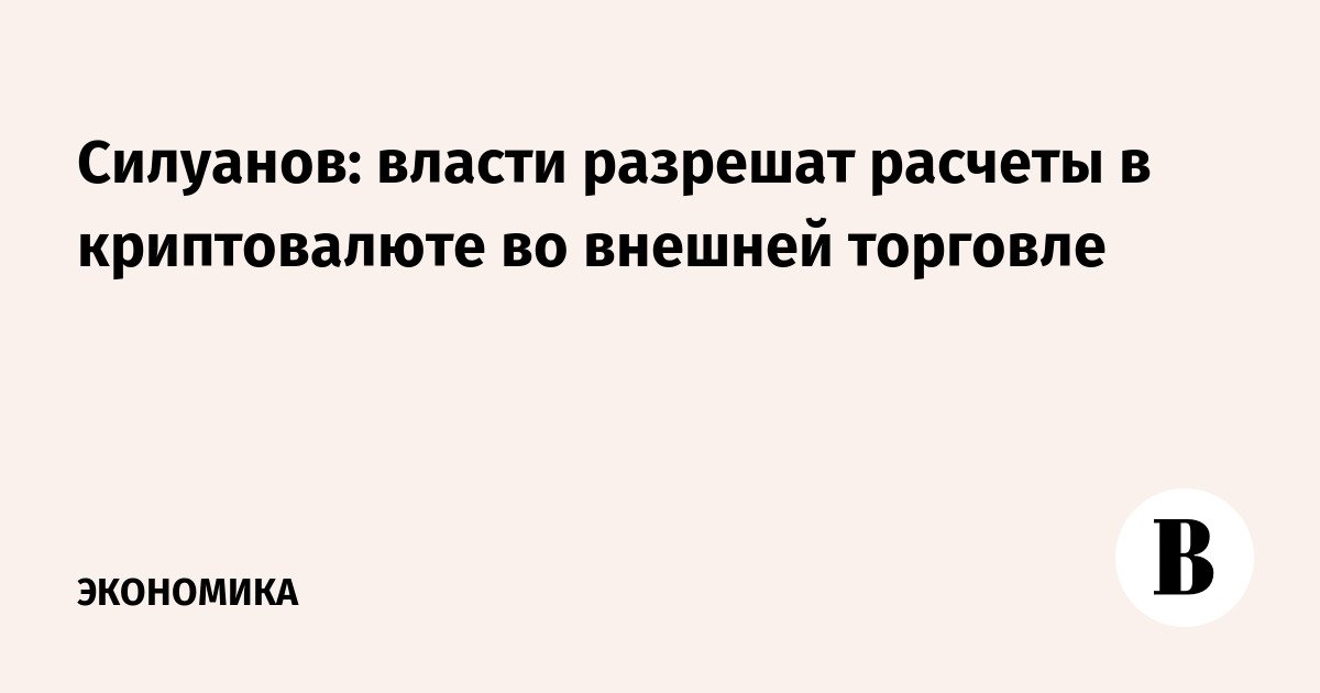Siluanov: authorities will allow settlements in cryptocurrency in foreign trade