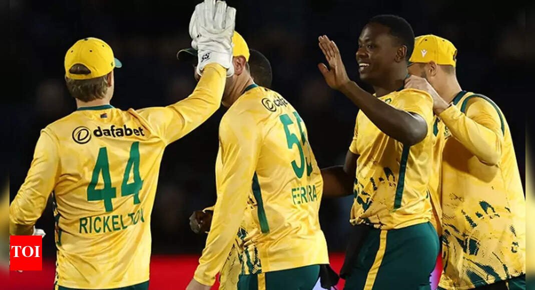 South Africa emerged victorious over England in a rain-hit first T20 International match at Cardiff. The match was significantly impacted by rain, forcing the implementation of the DLS method. Bowling first, Marco Jansen and Corbin Bosch played pivotal roles, picking up two wickets each and helping restrict England to 54 for 5 in a reduced 10-over innings. Their performances laid the foundation for South Africa’s eventual triumph.