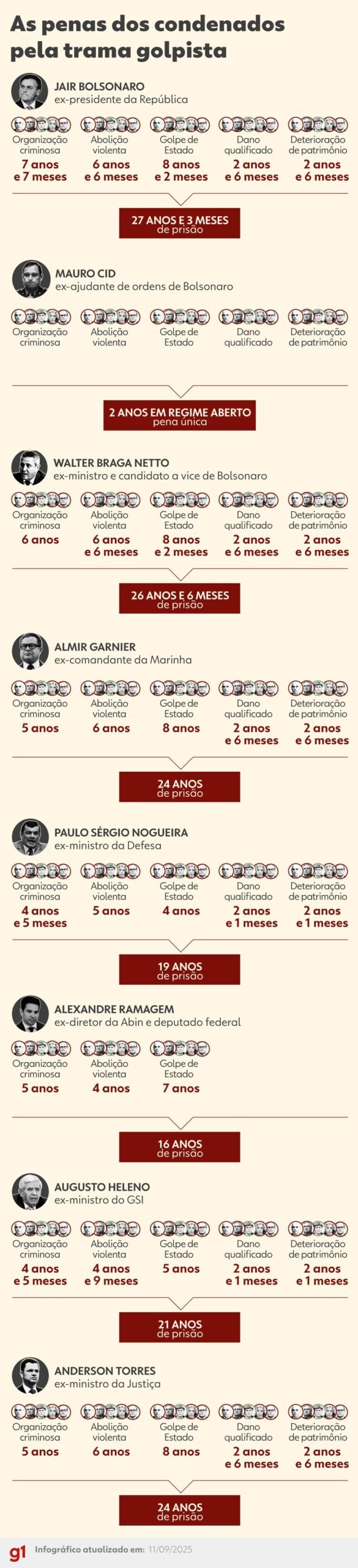 The Supreme Court of Brazil published on Wednesday (22) the decision of the First Panel that convicted former president Jair Bolsonaro and seven allies for an attempted coup. Now, the deadline is open for defenses to submit appeals questioning the ministers’ ruling. Lawyers will have up to 5 days to file the so-called clarification appeals since the crucial core was convicted by a vote of 4 to 1. The document has nearly 2,000 pages. After the submission of appeals, there is no set deadline for the analysis. The rapporteur, Alexandre de Moraes, may individually assess some requests or submit the case to the collegiate body. He may also request the Attorney General’s Office to comment before bringing the case to trial. Therefore, the imprisonment of Bolsonaro or any of the other defendants will not be immediate. There is an expectation at the Supreme Court that any appeals will be reviewed by the end of the year. The sentence only takes effect when the process is completed and there are no more possibilities of appeal. This occurs after the ministers analyze whether these points will be upheld or not.