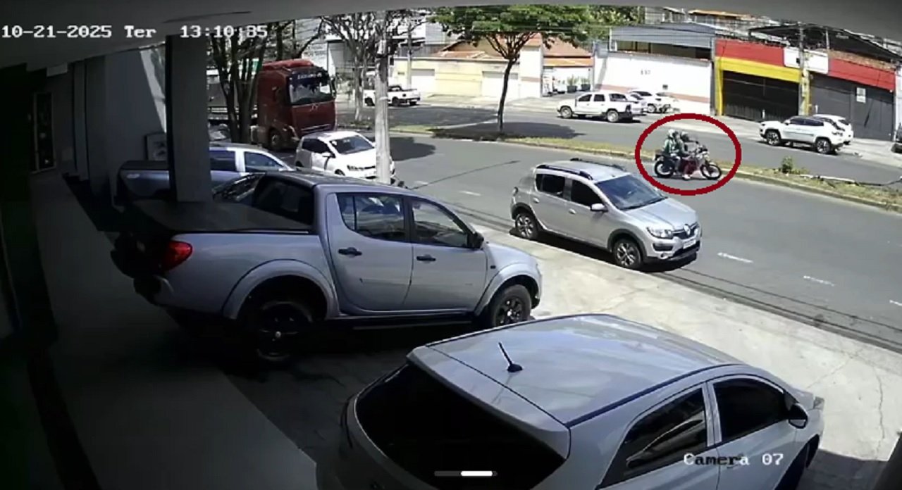 The security cameras of a vehicle dealership captured the moment when the duo suspected of shooting a military police officer fled on Tuesday afternoon (10/21). The officer was killed after reportedly trying to prevent a robbery. The incident took place in the Tirol neighborhood, in the Barreiro region of Belo Horizonte. The 14-second recording shows one of the suspects, already on the motorcycle, accessing Nélio Cerqueira Avenue against traffic to wait for his accomplice. The second suspect, the passenger, is seen running, looking back, getting on the motorcycle, and quickly leaving the street. The officer’s death was confirmed at the crime scene. Relatives of the officer, including his wife, were present during the registration of the incident. The Civil Police forensic team arrived around 3 p.m. for standard procedures. As of the publication of this report, it had not been disclosed whether the duo suspected of involvement in the homicide had been located and arrested.